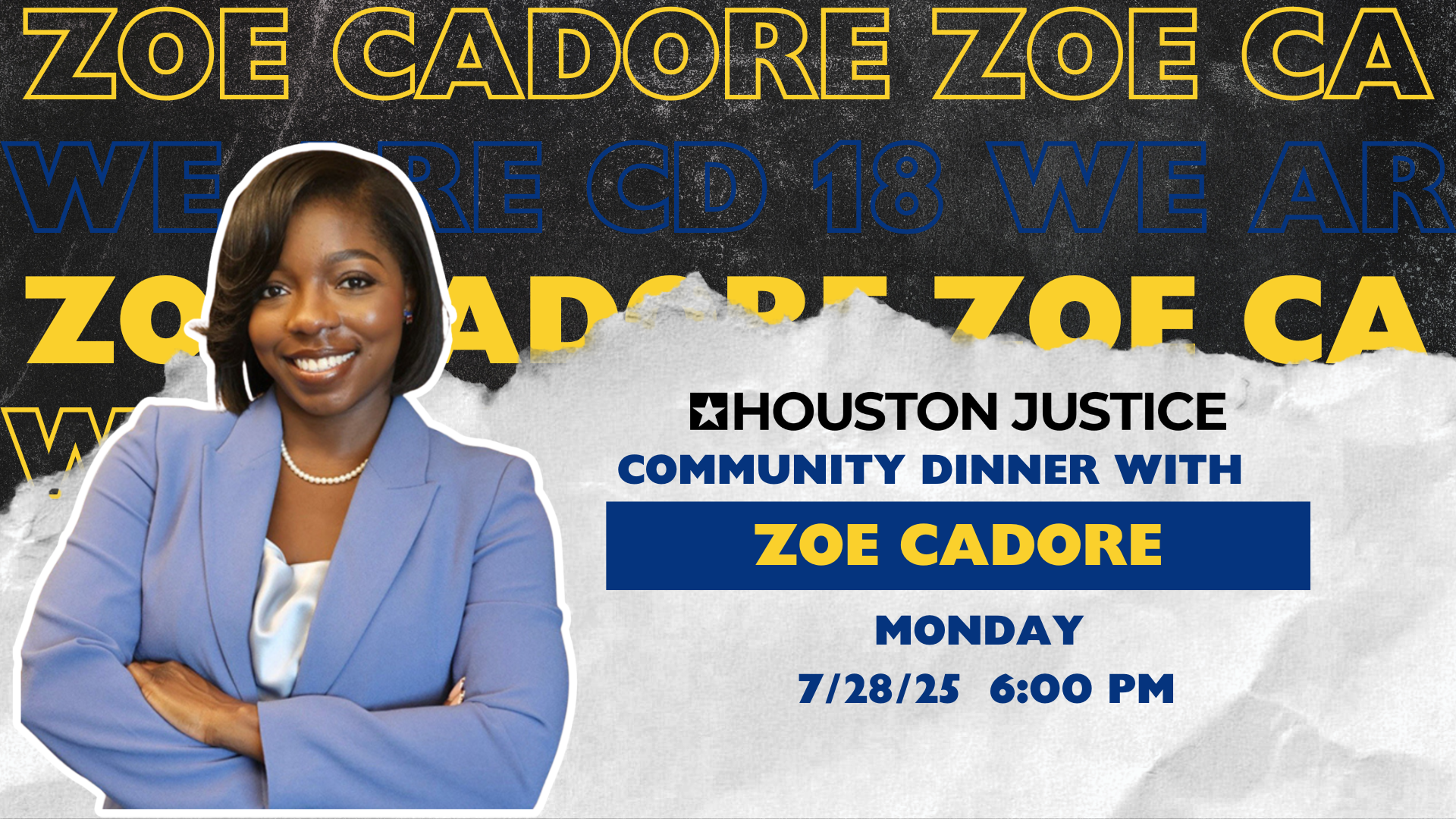 As part of our WeAreCD18 campaign, we’re sitting down with each of the candidates running in CD18 to hear directly from them—no debate stage, just real conversation. Join us for a complimentary community dinner and open forum where residents and voters can connect one-on-one with candidates in a relaxed setting.